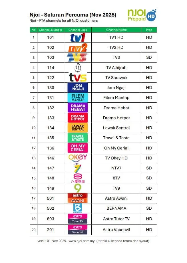 Kami ada perkhidmatan memasang Unifi, Astro dan Njoi. Ready Stock area pasir gudang!